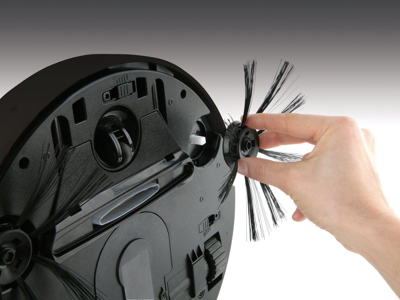 - 2 cepillos laterales: Sus dos cepillos laterales recogen toda la suciedad. Estos dos cepillos concentran toda la suciedad en el centro del robot para poder ser aspirado, así no se quedará nada atrás.