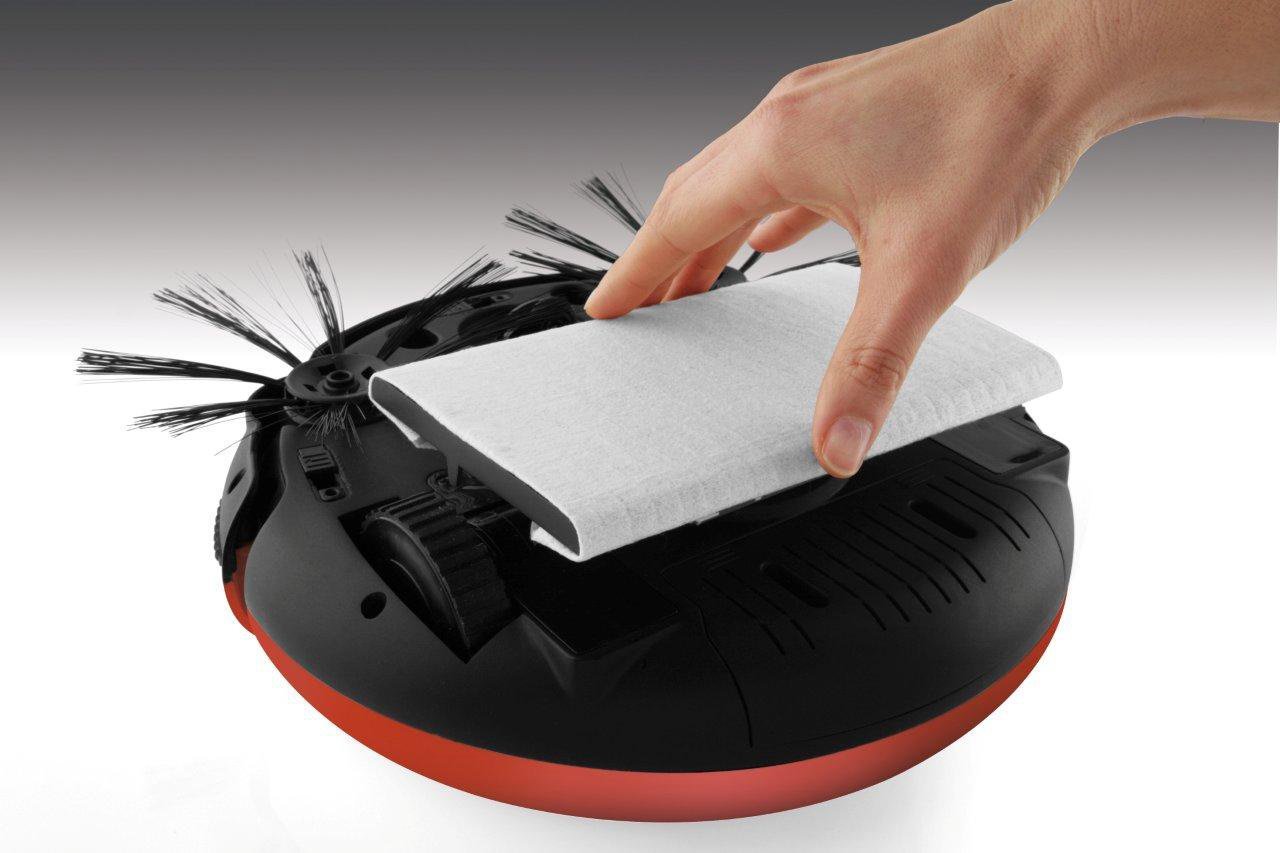 - Función mopa: Para una limpieza mayor, el robot aspirador Striker mini tiene acoplada una mopa. Esta mopa esta en continuo contacto con el suelo y le permite eliminar y cualquier resto de suciedad. Puedes usar cualquier tipo de mopa desechable.